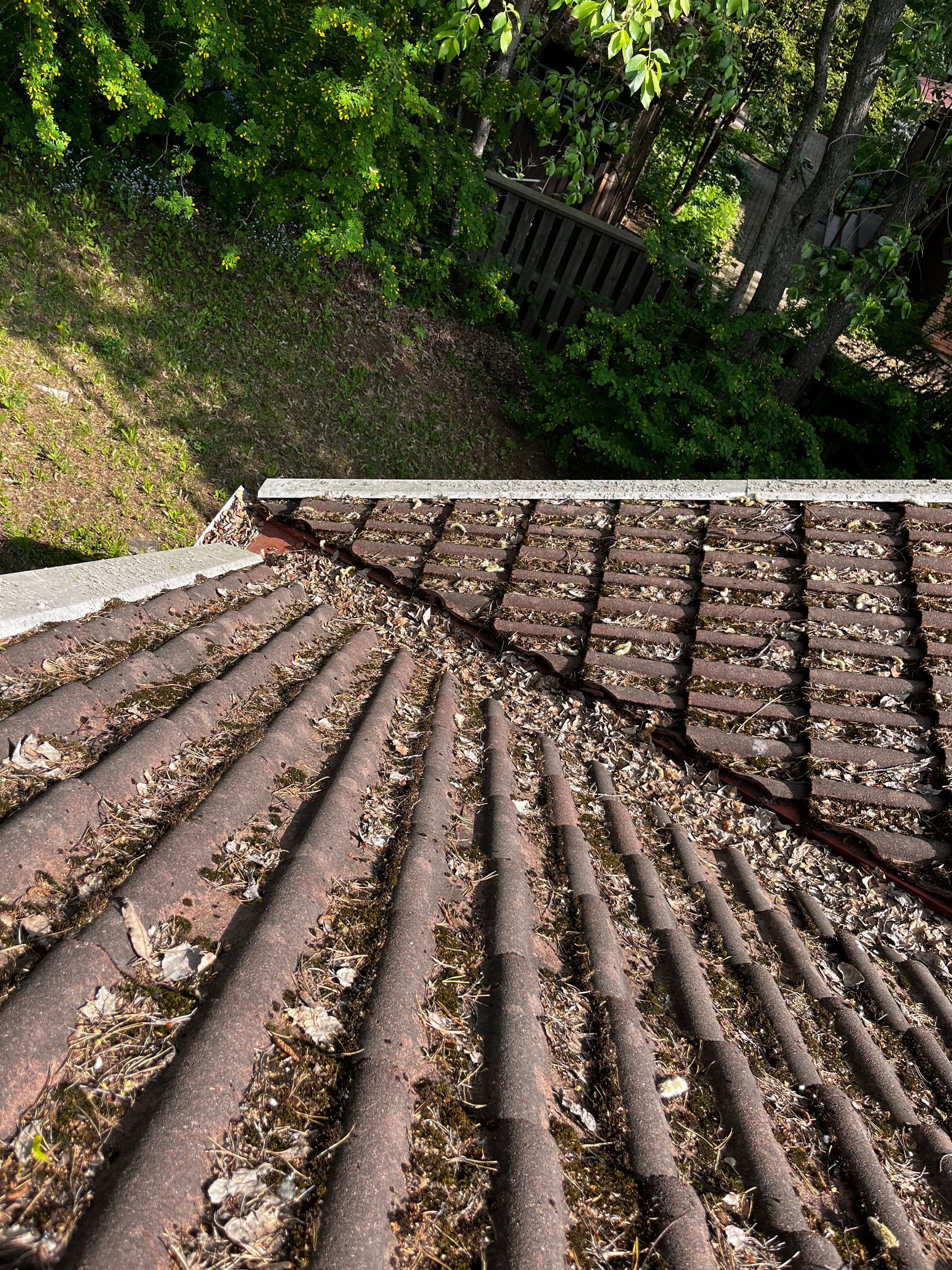 Katto 240 m² ennen sammaleenpoistoa ja maalausta