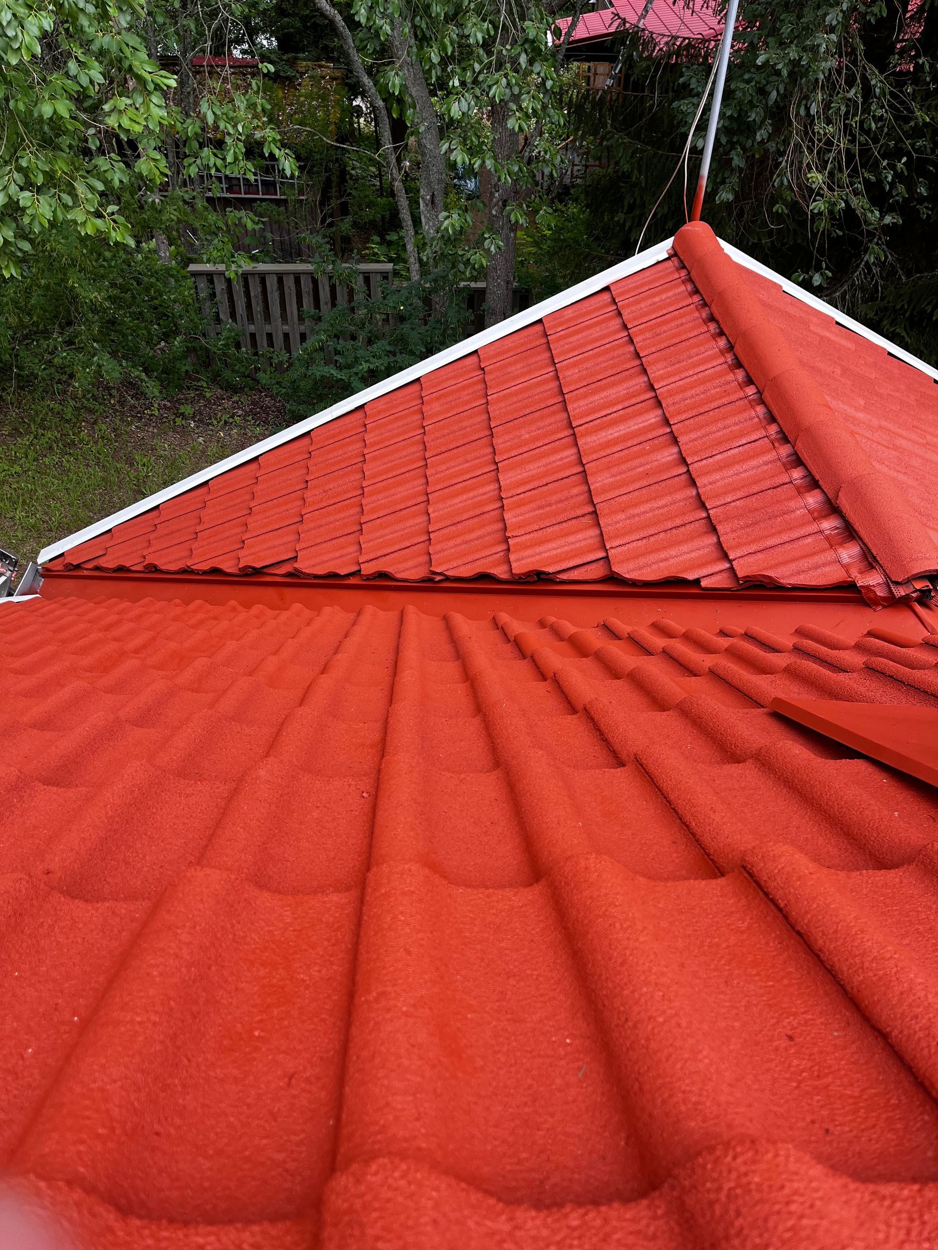 Katto 240m² sammaleenpoiston ja maalauksen jälkeen